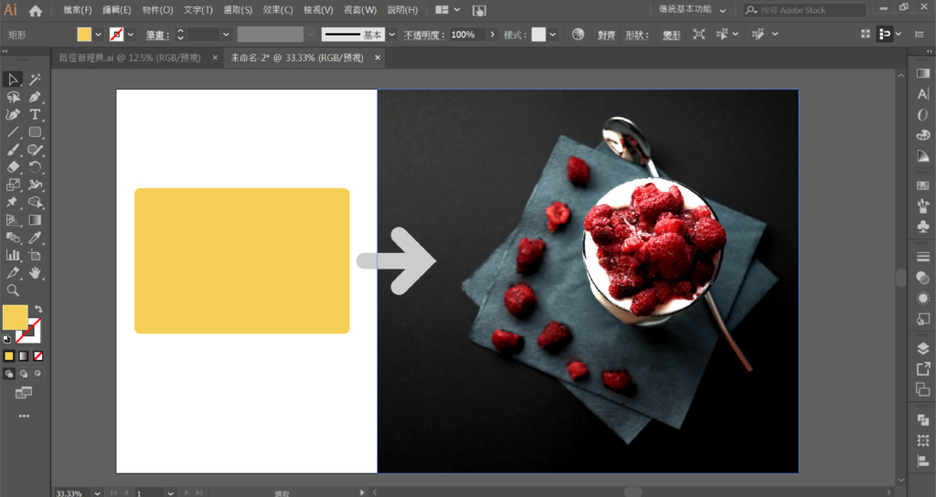 - 只有向量圖檔才能作為遮色片,但任何圖檔都可以進行遮罩